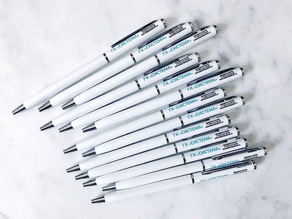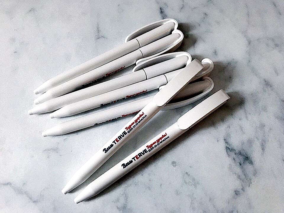 Печать на ручках в Красноярске по низким ценам. Это может быть Pin Up надпись или любой рисунок. Напечатаем методом шелкографии, лазерной гравировки или УФ-печати.